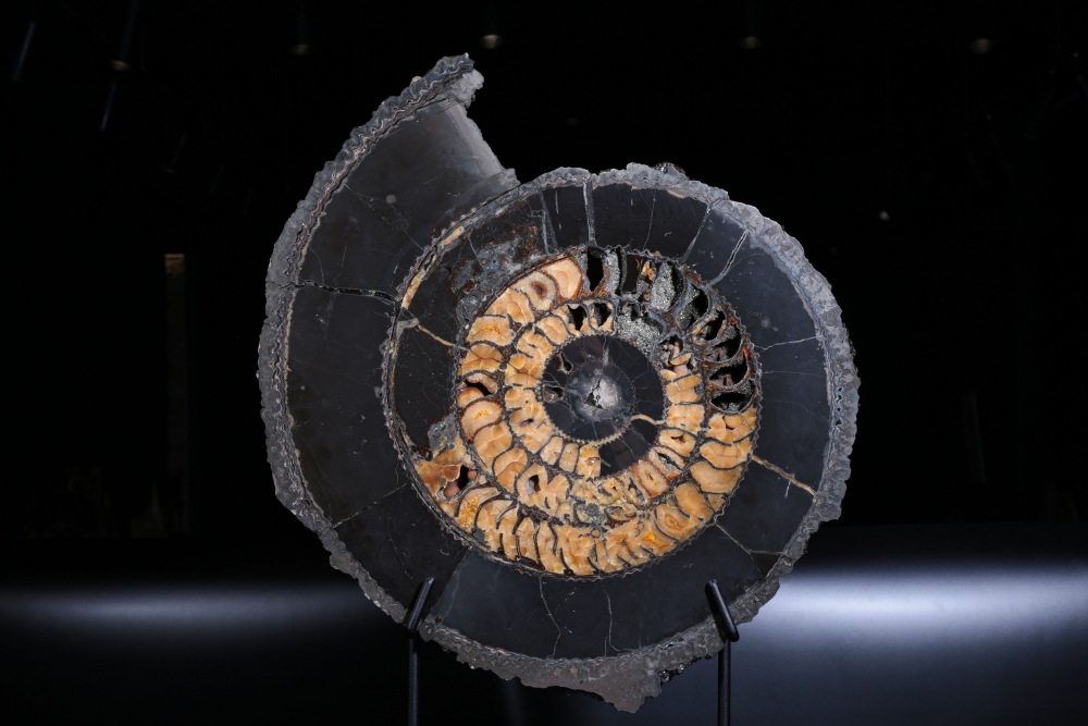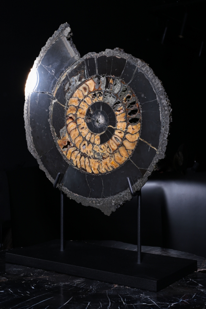 Раковины крупных аммонитов часто имеют красивое строение внутренних полостей. В отсеках, которые были пустыми при жизни моллюска, начинается рост относительно крупных кристаллов. Формируется жеода – каменный «карман», полость, заполненная кристаллами различных минералов. Если рост будет интенсивным, свободного места не останется и отсеки приобретут цвет и фактуру, отличающиеся от окружающего материала.