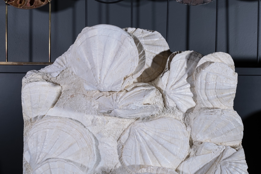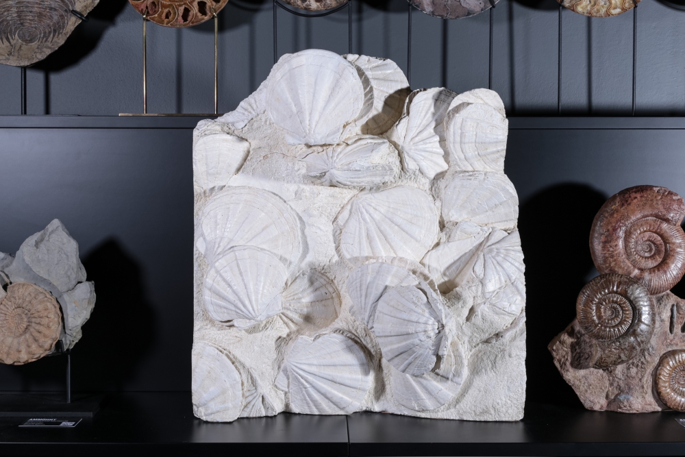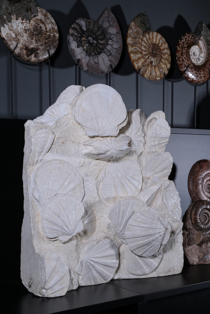 Как и современные гребешки, древние Gigantopecten могли образовывать значительные скопления. Их прочные раковины с толстыми стенками хорошо сохранялись в окаменевшем состоянии. Участок морского дна с раковинами Gigantopecten отлично подойдет для интерьера, связанного с морской тематикой.