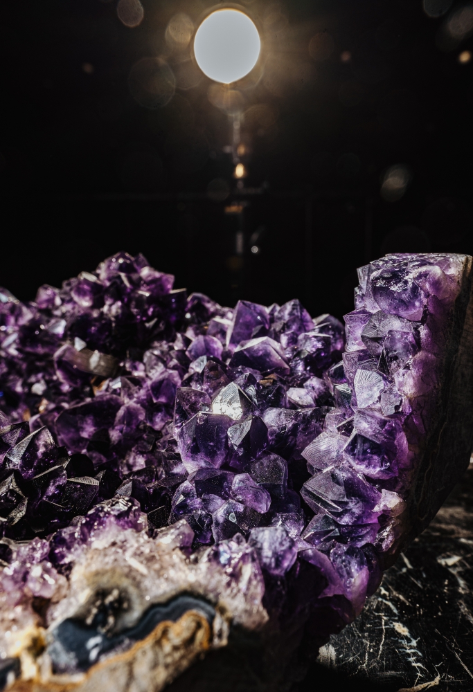 При хранении жеоды следует помнить, что аметист выцветает под прямыми солнечными лучами. Лучше поместить жеоду в место с мягким, приглушенным светом, и тогда она долгие годы будет радовать вас своей красотой.