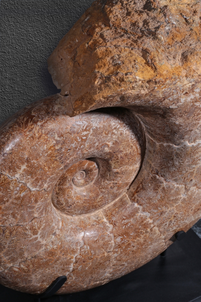 Установленный на подставку, аммонит становится арт-объектом: в интерьере он работает как акцент, как вещь, притягивающая взгляд и создающая ощущение пространства, наполненного историей и природной эстетикой. Он одинаково органичен в строгом кабинете, в тёплой гостиной, в галерее или в дизайнерском интерьере в стиле лофт.