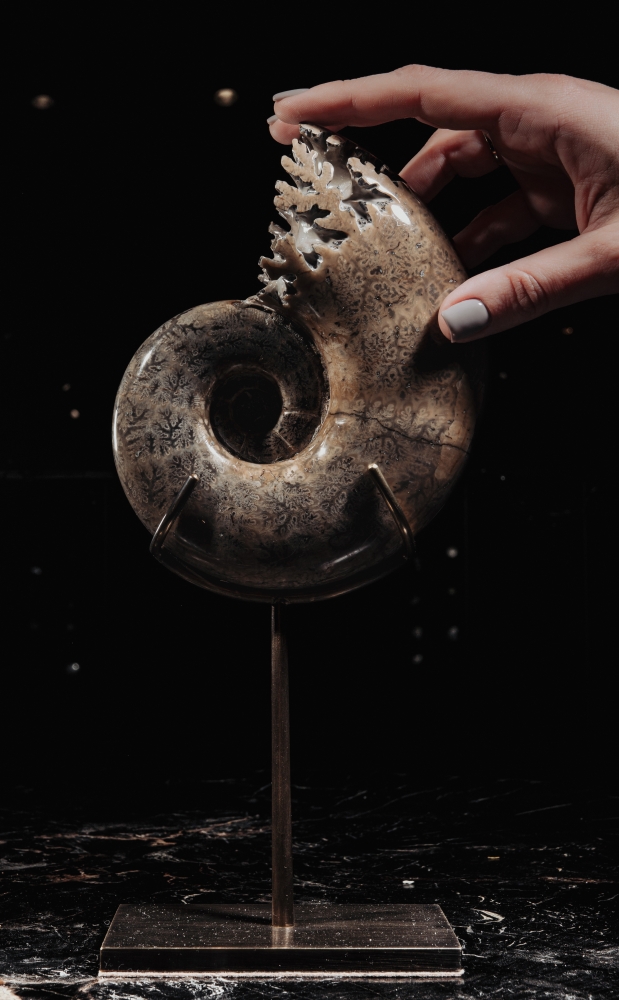 Установленный на изящную подставку такой аммонит станет прекрасным дополнением для интерьера.