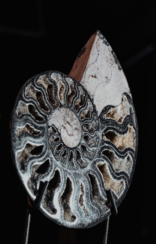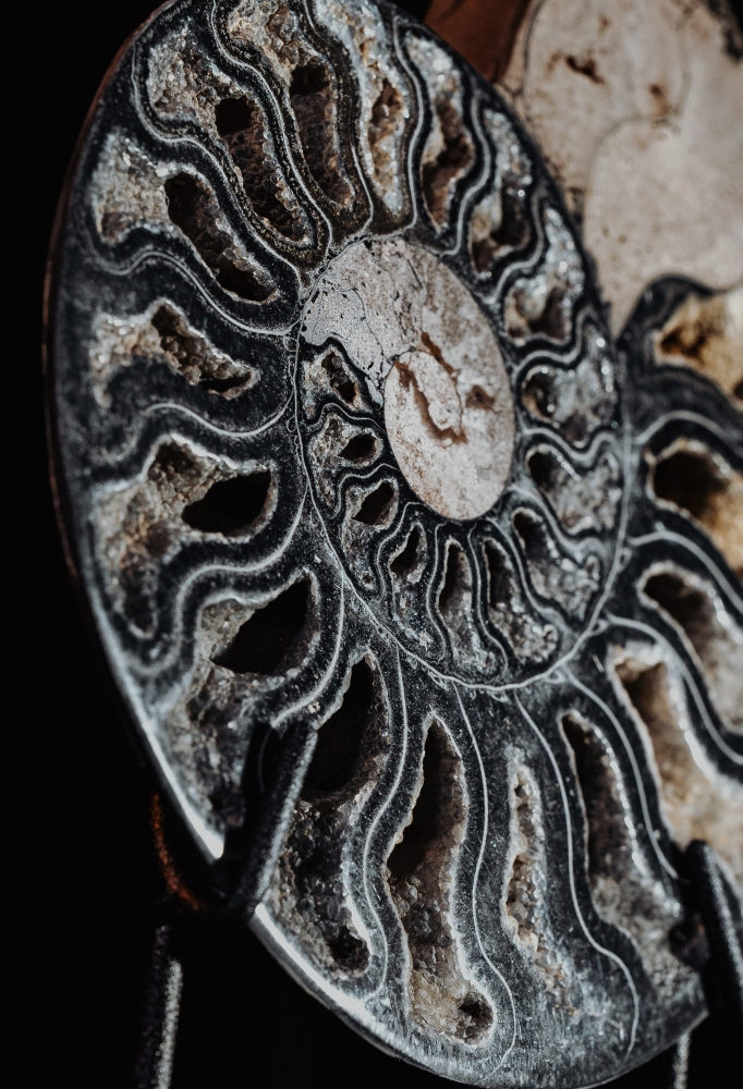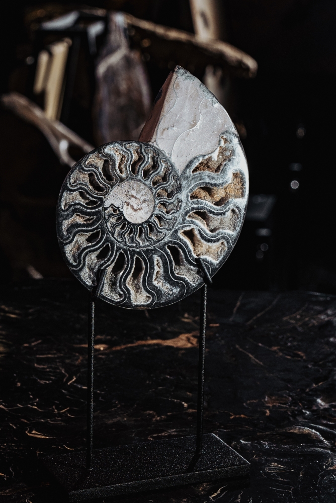 Их раковины были замещены кальцитом, способным окрашиваться в самые невероятные цвета под действием прочих минералов. Основной цвет мадагаскарских аммонитов – янтарно-рыжий, но поверх него накладывается листообразный узор лопастных линий. Раковины становятся похожи на произведения искусства, покрытые затейливым орнаментом. Установленные на изящную подставку, они отлично впишутся в ваш интерьер.
