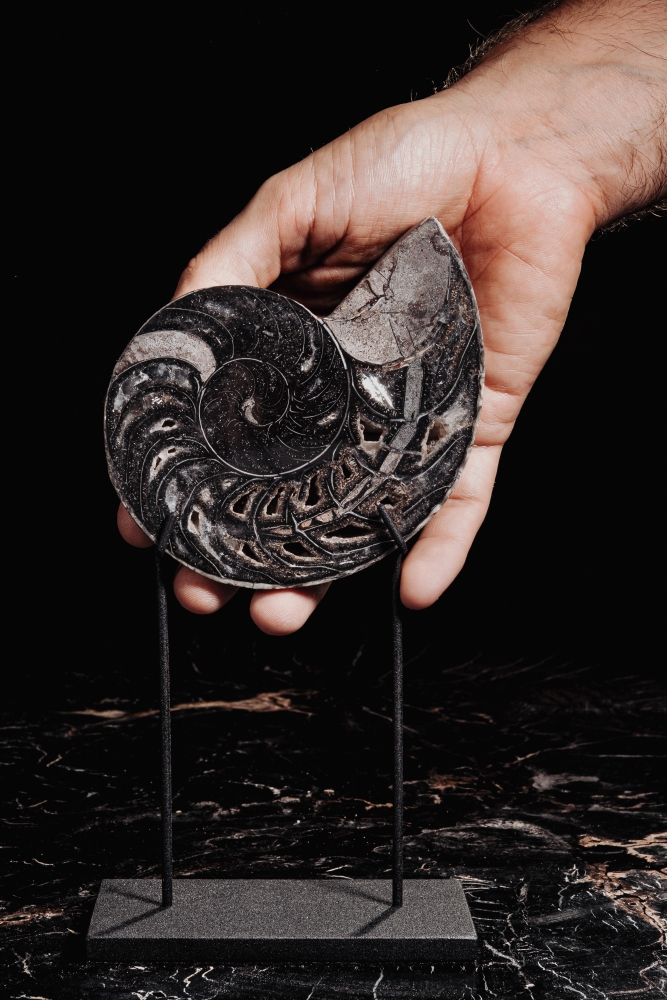 Наутилусы – это головоногие моллюски, обитающие на нашей планете с палеозойской эры. Их внешний вид напоминает более известных аммонитов. Но, в отличие от аммонитов, наутилусы сохранились до наших дней, являясь настоящими живыми ископаемыми. Раковины наутилусов в виде окаменелостей встречаются редко и ценятся достаточно высоко. Данный экземпляр обладает приятной окраской и будет хорошо смотреться в интерьере.