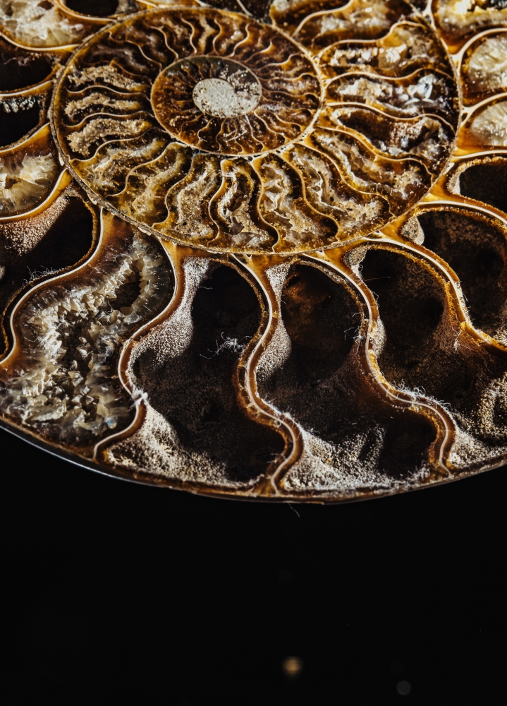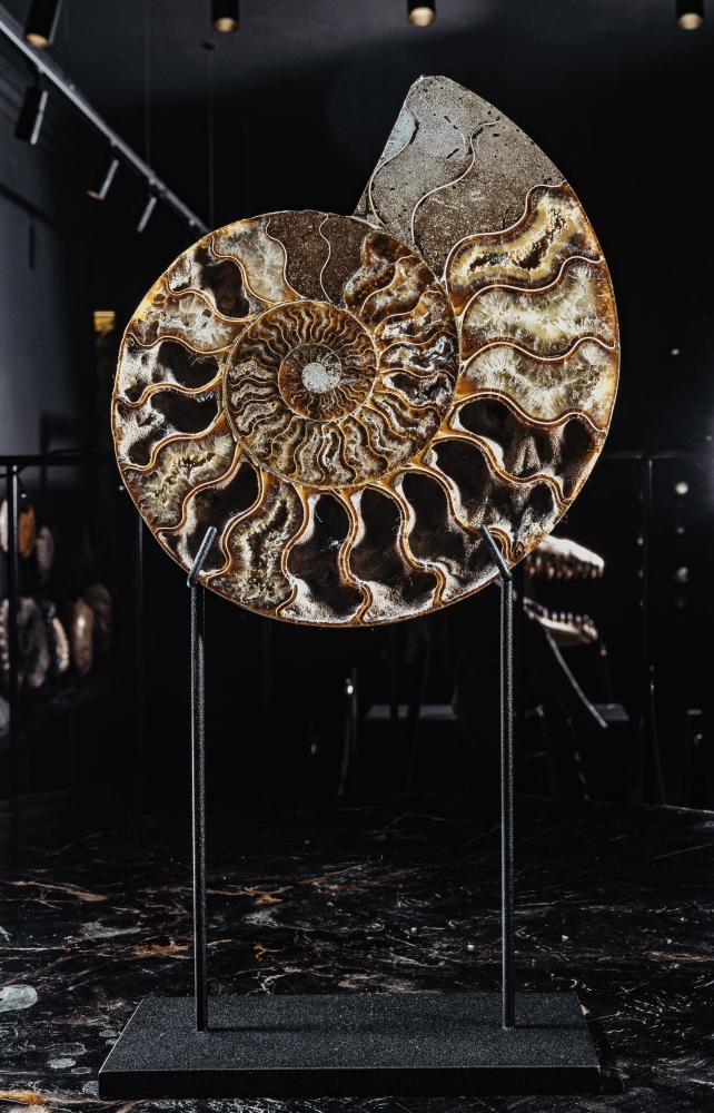 Их раковины были замещены кальцитом, способным окрашиваться в самые невероятные цвета под действием прочих минералов. Основной цвет мадагаскарских аммонитов – янтарно-рыжий, но поверх него накладывается листообразный узор лопастных линий. Раковины становятся похожи на произведения искусства, покрытые затейливым орнаментом. Установленные на изящную подставку, они отлично впишутся в ваш интерьер.