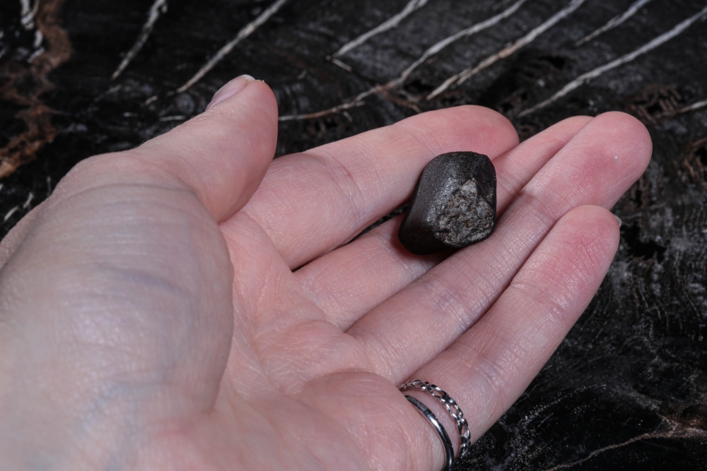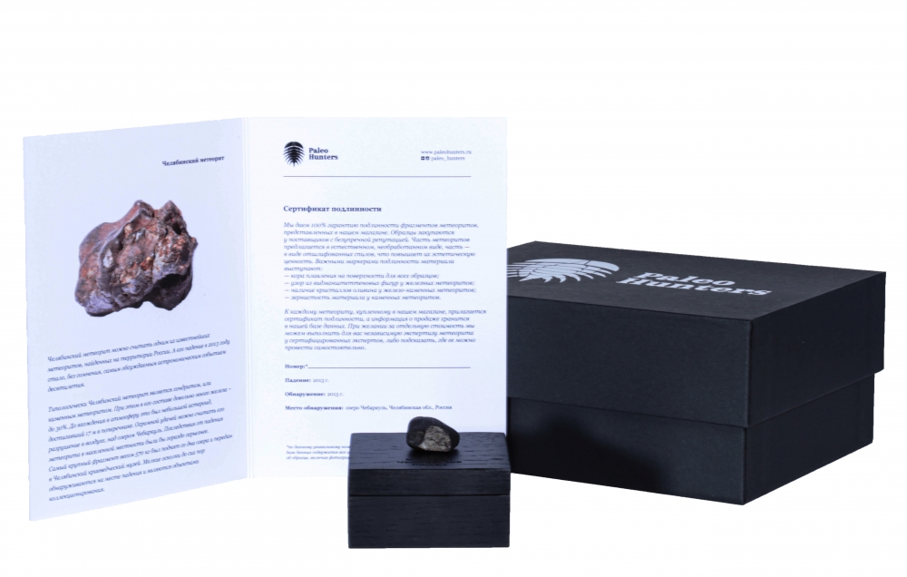 Этот уникальный образец — небольшой фрагмент знаменитого челябинского метеорита, который взорвался в небе над городом 15 февраля 2013 года, найденный в районе озера Чебаркуль. Метеорит обладает богатым минералогическим составом, отражающим его космическое происхождение. Фрагмент отлично подходит для коллекционирования и научных исследований. Этот кусочек истории космоса — редкая возможность прикоснуться к событию, которое потрясло весь мир и стало важной страницей в изучении метеоритных явлений.