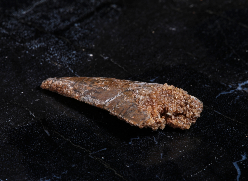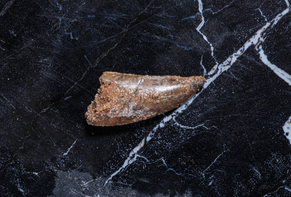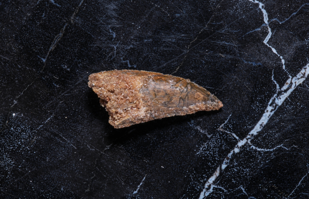 Этот зуб принадлежал хищному динозавру из семейства дромеозаврид. Зуб имеет небольшой изгиб и коническую форму. По краю идет хорошо заметное ребро с зазубринами, облегчающими рассекание шкуры и мягких тканей добычи.