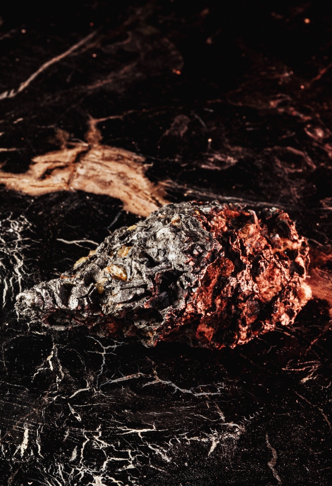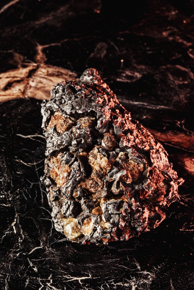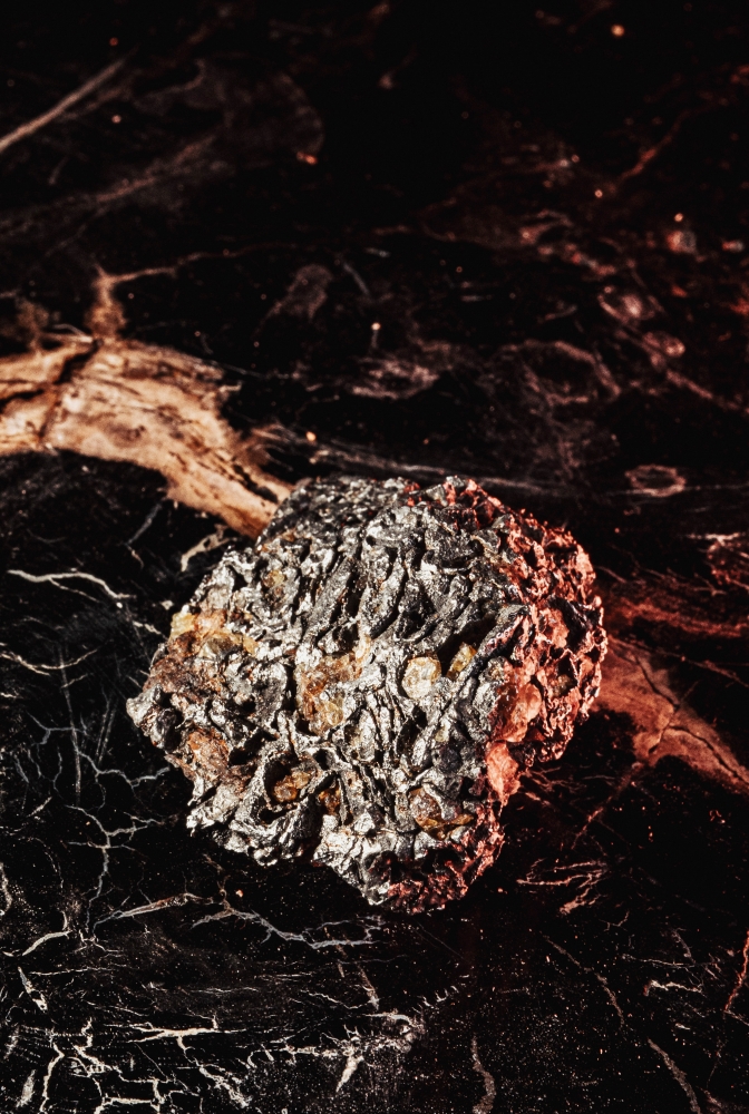 Фрагмент метеорита Сеймчан, найденного в Магаданской области в 1967 году. Представляет собой небольшой металлический обломок бурого цвета. Поверхность имеет хорошо выраженную кору плавления, покрытую вмятинами и углублениями. Рельеф поверхности сглаженный, что может быть результатом водной эрозии. Внутренняя структура образца неизвестна. Метеорит Сеймчан относится к палласитам, и имеет неоднородный состав. Известны как цельнометаллические обломки, так и содержащие зерна оливина. Фрагмент метеорита Сеймчан имеет высокую коллекционную ценность, а также может быть использован как сырье для создания ювелирных изделий.