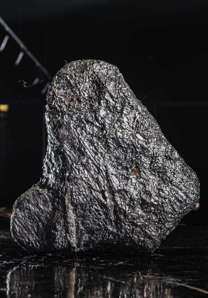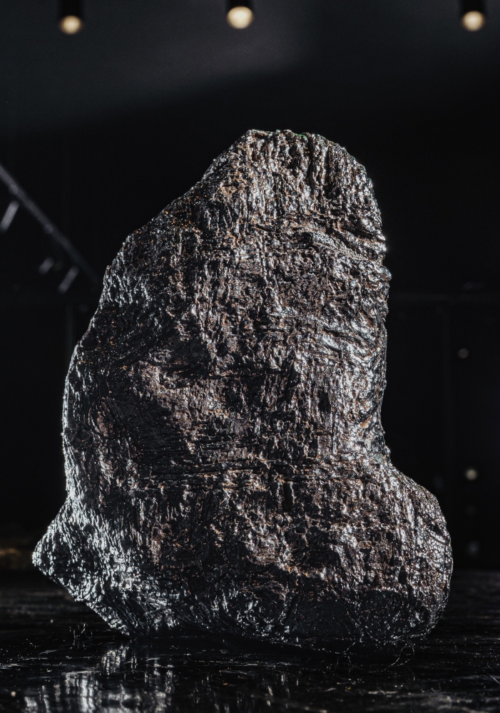 Фрагмент метеорита Сеймчан, найденного в Магаданской области в 1967 году. Представляет собой небольшой металлический обломок. Рельеф поверхности сглаженный, что может быть результатом водной эрозии. Внутренняя структура образца неизвестна. Метеорит Сеймчан относится к палласитам, и имеет неоднородный состав. Известны как цельнометаллические обломки, так и содержащие зерна оливина. В данном случае, учитывая солидную массу, образец может целиком состоять из железо-никелевого сплава. Фрагмент метеорита Сеймчан имеет высокую коллекционную ценность, а также может быть использован как сырье для создания ювелирных изделий.