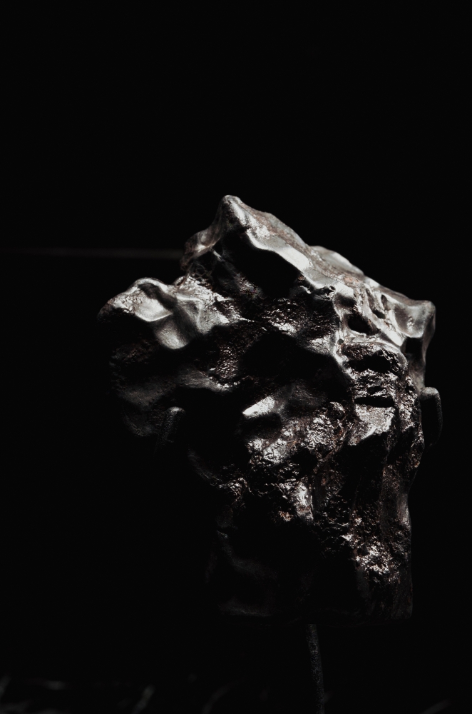 Фрагмент знаменитого Сихотэ-Алинского метеорита, упавшего в Приморском крае в 1947 году. Это лишь малая часть глыбы весом более 30 тонн, обрушившейся на Землю. Падение метеорита наблюдалось местными жителями, один из которых, художник Медведев П.И., запечатлел событие на картине.