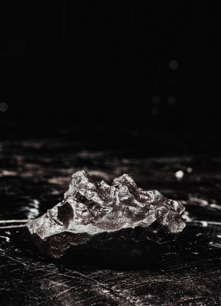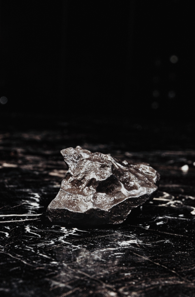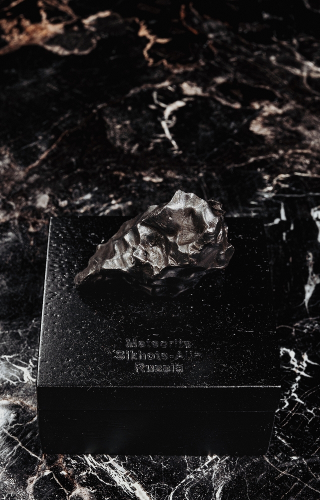 К образцу прилагается черная деревянная коробка с наименованием метеорита. Она может быть использована и как бокс для хранения, и как стильная подставка, на которой метеорит фиксируется с помощью магнита.
