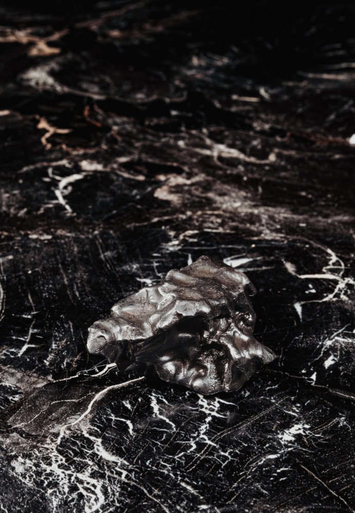 Фрагмент метеорита имеет углубления, называемые регмаглиптами. Они образуются во время прохождения метеоритом атмосферы в результате сверления потоком воздуха. Такие фрагменты называются индивидуальными, образуются при разрушении космического тела в атмосфере и выпадают на землю в виде метеоритного дождя.