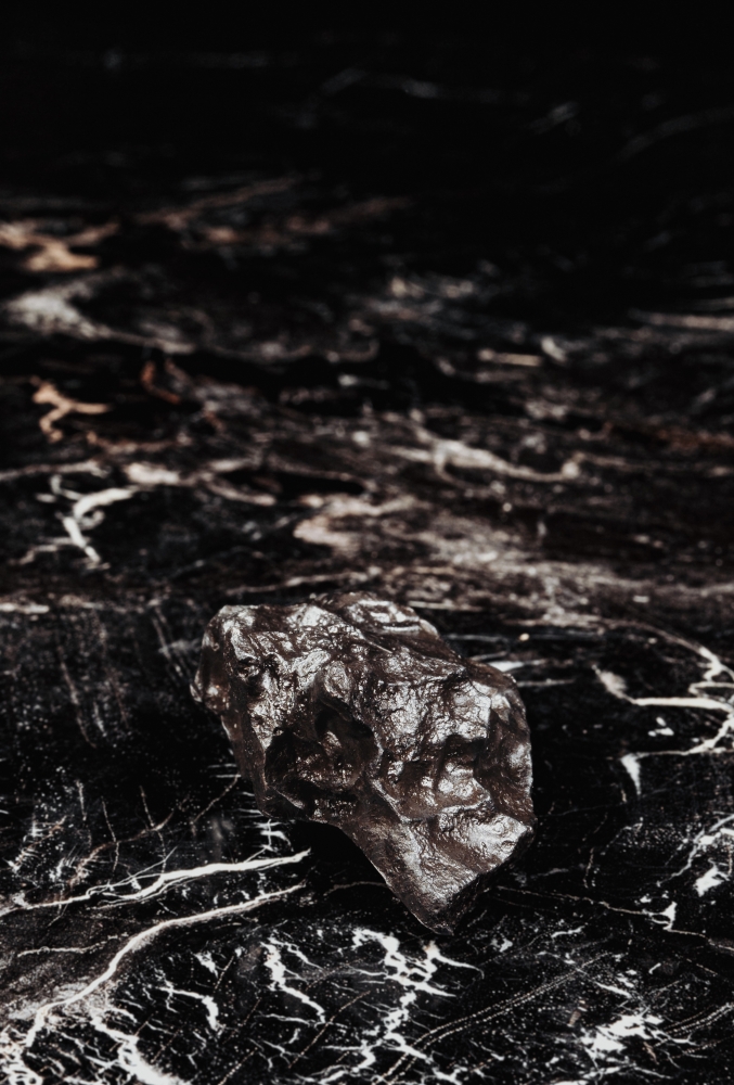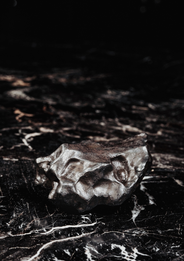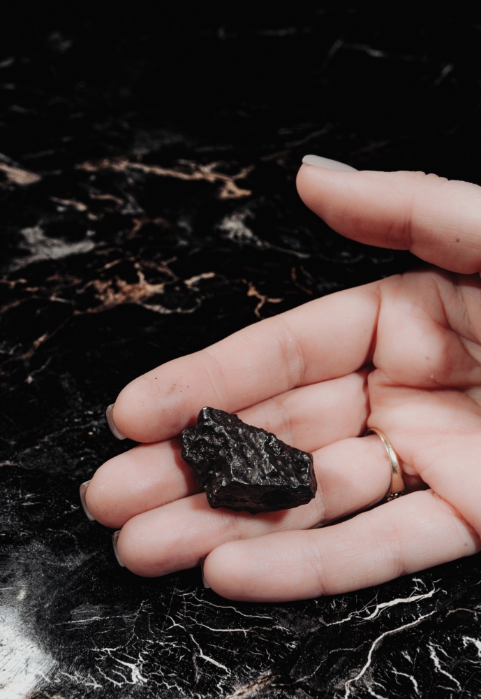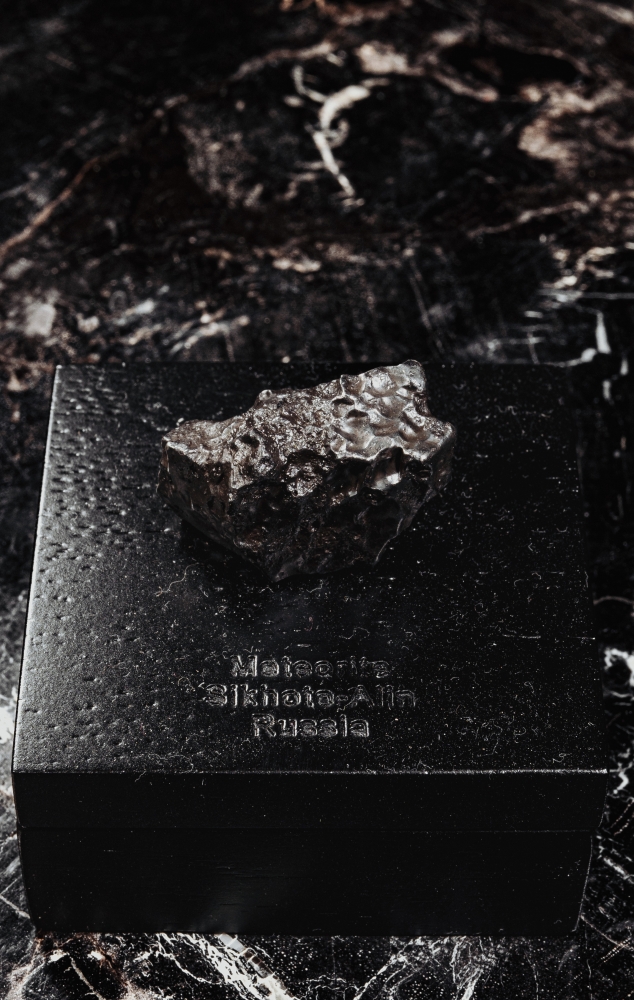 К образцу прилагается черная деревянная коробка с наименованием метеорита. Она может быть использована и как бокс для хранения, и как стильная подставка, на которой метеорит фиксируется с помощью магнита.