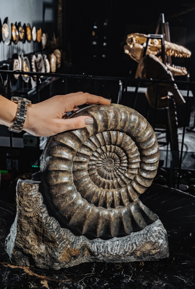 Раковина Arietites впечатляет не только размерами, но и красотой. Гармоничные пропорции спирали, выраженные поперечные ребра и напоминающая бронзу окраска превращают его в эффектный экспонат серьезной коллекции.