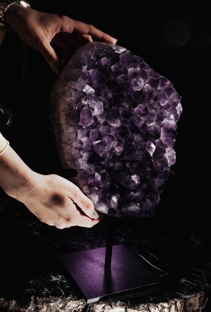 При хранении жеоды следует помнить, что аметист выцветает под прямыми солнечными лучами. Лучше поместить жеоду в место с мягким, приглушенным светом, и тогда она долгие годы будет радовать вас своей красотой.
