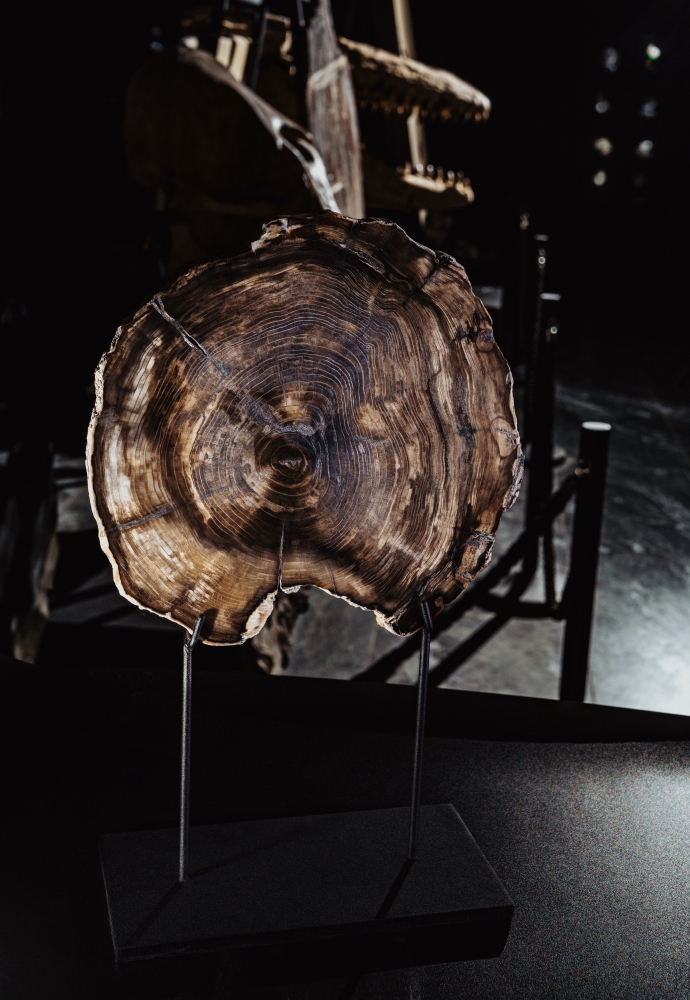 Спил окаменевшего дерева из Невады. Классифицирован как кедр, а значит, относится к роду Cedrus или его ближайшим древним родственникам. Возраст от 5 до 23 млн лет, что соответствует миоценовой эпохе.