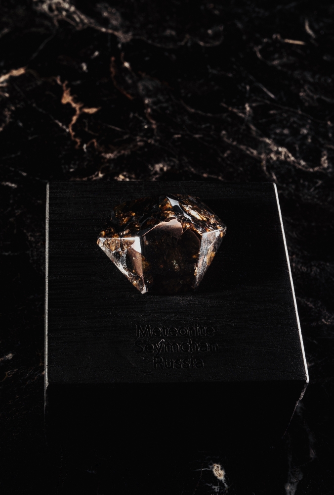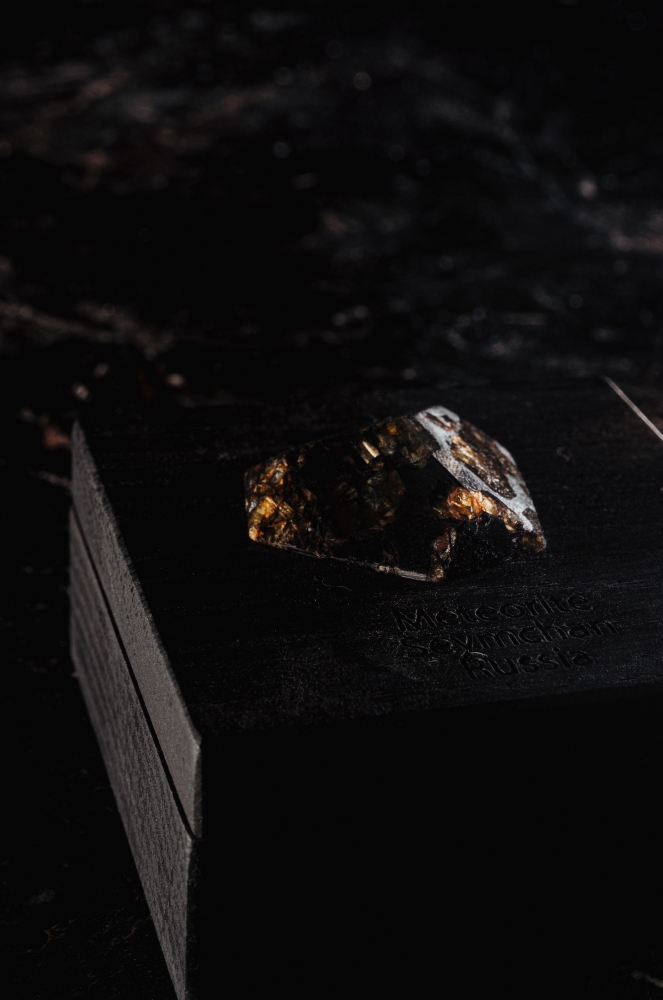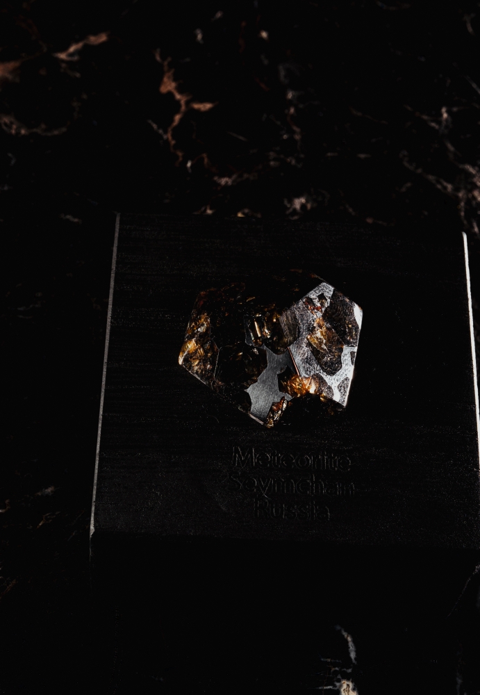К метеориту прилагается деревянная шкатулка, которая может быть использована как стильная подставка для демонстрации образца.