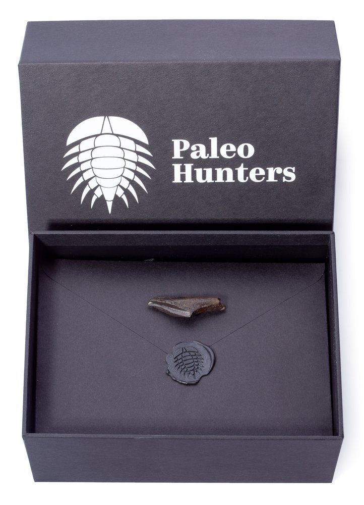 В стоимость включена стильная черная коробка с фирменным логотипом компании Paleo Hunters. Специальный наполнитель убережет вашу покупку от повреждений. К коробке прилагается конверт с сургучной печатью нашего логотипа, внутрь которого помещен сертификат, подтверждающий подлинность образца.
