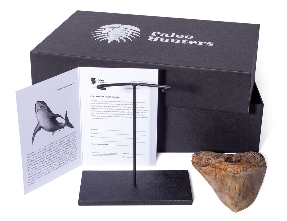 В стоимость включена стильная черная коробка с фирменным логотипом компании Paleo Hunters. Специальный наполнитель убережет вашу покупку от повреждений. К коробке прилагается конверт с сургучной печатью нашего логотипа, внутрь которого помещен сертификат, подтверждающий подлинность образца.
