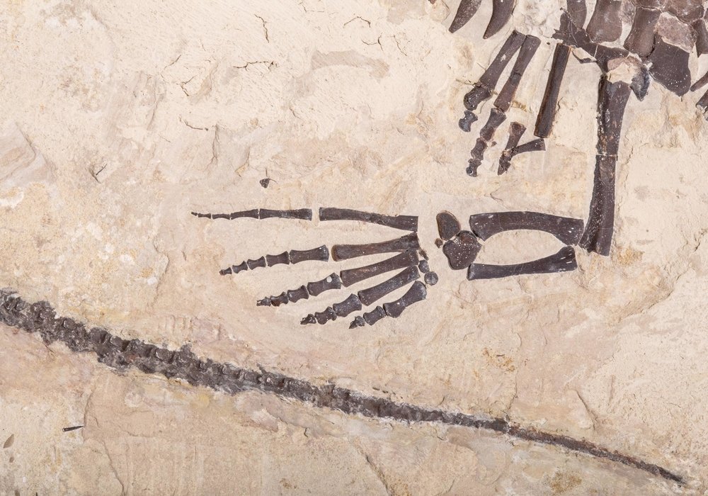 Скелет имеет великолепную сохранность: позвонки, кости черепа, фаланги пальцев и тоненькие зубы находятся в отличном состоянии, а ведь он минимум на 40 млн лет старше первых динозавров!