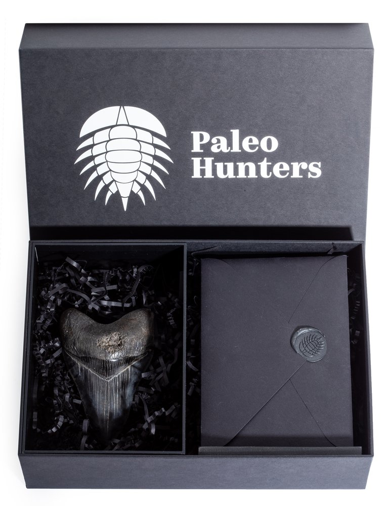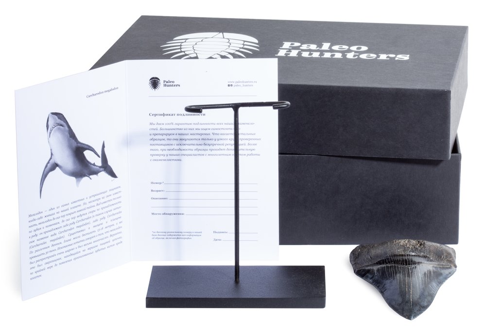 В стоимость включена стильная черная коробка с фирменным логотипом компании Paleo Hunters. Специальный наполнитель убережет вашу покупку от повреждений. К коробке прилагается конверт с сургучной печатью нашего логотипа, внутрь которого помещен сертификат, подтверждающий подлинность образца.