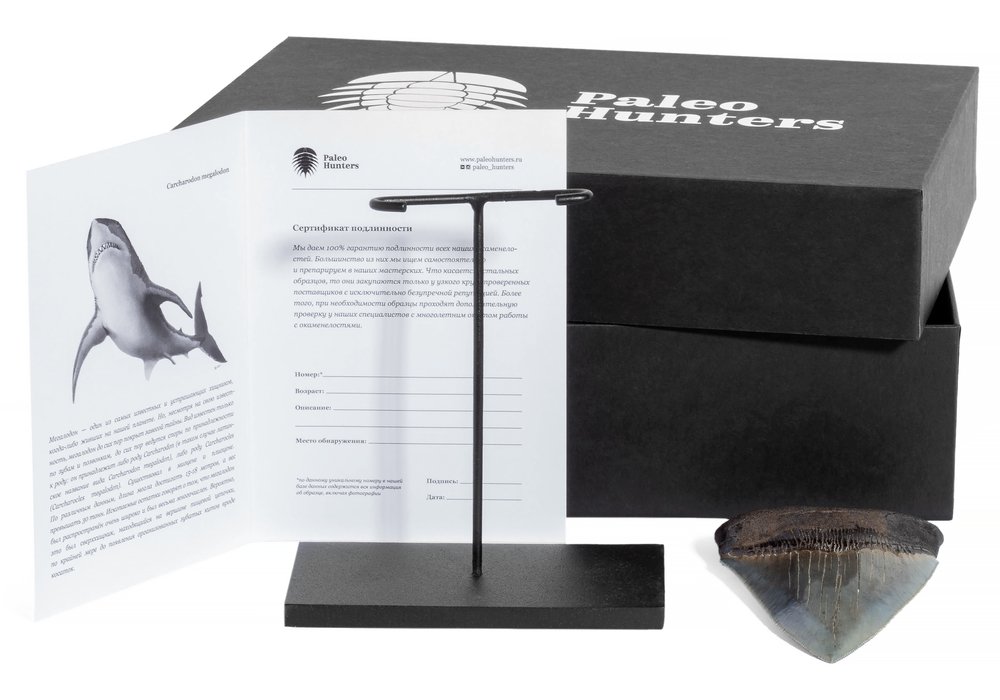 В стоимость включена стильная черная коробка с фирменным логотипом компании Paleo Hunters. Специальный наполнитель убережет вашу покупку от повреждений. К коробке прилагается конверт с сургучной печатью нашего логотипа, внутрь которого помещен сертификат, подтверждающий подлинность образца.