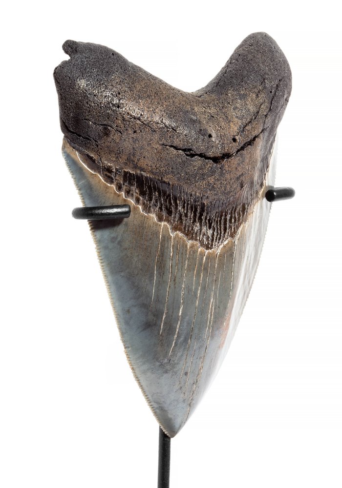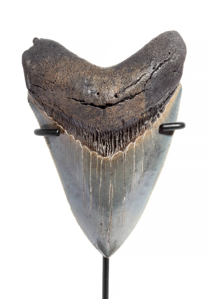 Зуб мегалодона на лаконичной металлической подставке – это стильный и многозначный элемент интерьера. Идеальный подарок для партнеров по бизнесу или для людей, у которых все есть. А надо ли говорить, какой восторг такой подарок вызовет у детей!
