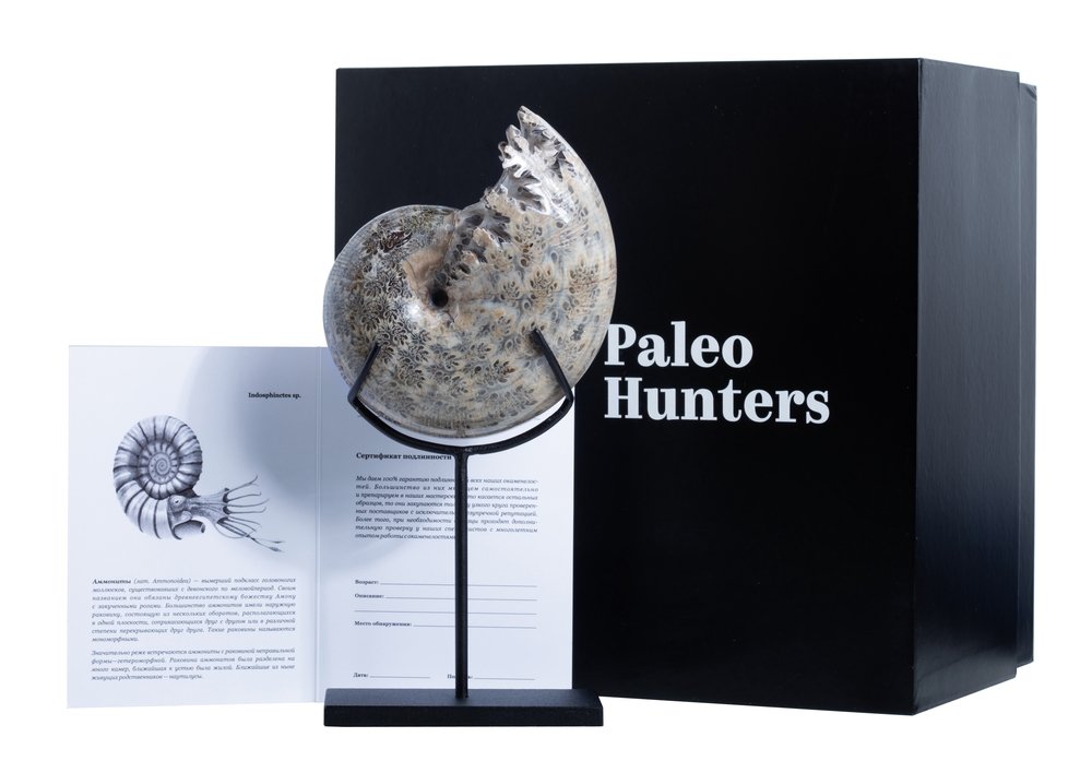 В стоимость включена стильная черная коробка с фирменным логотипом компании Paleo Hunters. Специальный наполнитель убережет вашу покупку от повреждений. К коробке прилагается конверт с сургучной печатью нашего логотипа, внутрь которого помещен сертификат, подтверждающий подлинность образца.