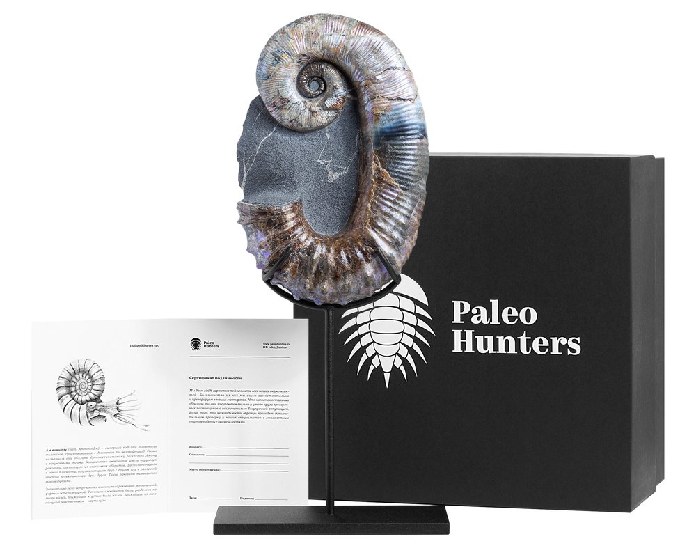 В стоимость включена стильная черная коробка с фирменным логотипом компании Paleo Hunters. Специальный наполнитель убережет вашу покупку от повреждений. К коробке прилагается конверт с сургучной печатью нашего логотипа, внутрь которого помещен сертификат, подтверждающий подлинность образца.