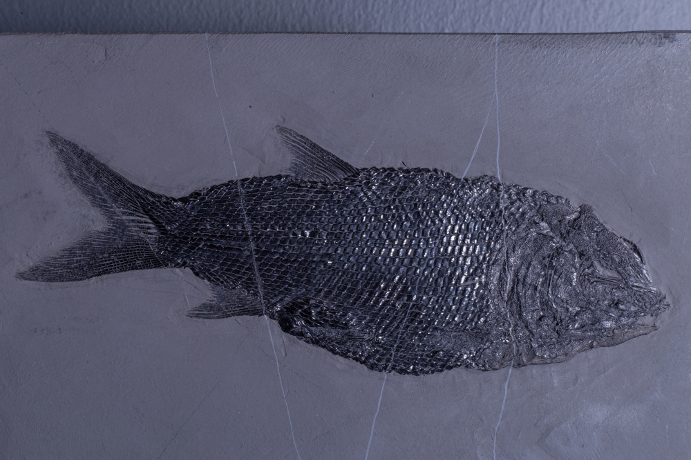 Рыба - Asialepidotus shingyiensis, древний родственник ильных рыб, живущих сегодня в Северной Америке. Окаменевшие скелеты этих рыб встречаются только в юго-восточном Китае.