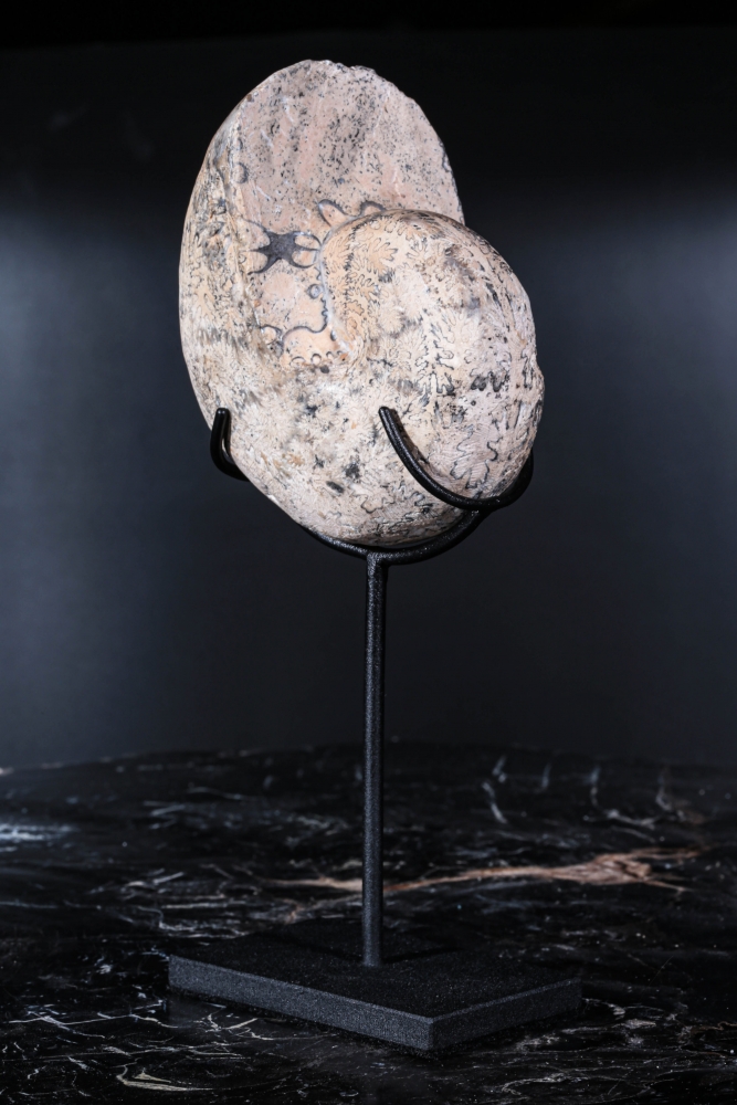 Оттенки бежевого и серого придают образцу особую теплоту. Это редкий, эстетически выразительный экземпляр, который украсит коллекцию любого, кто видит в камне не только след времени, но и природное искусство.
