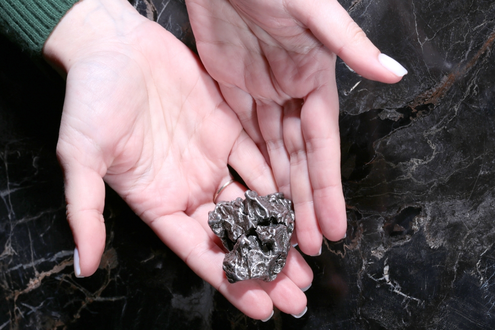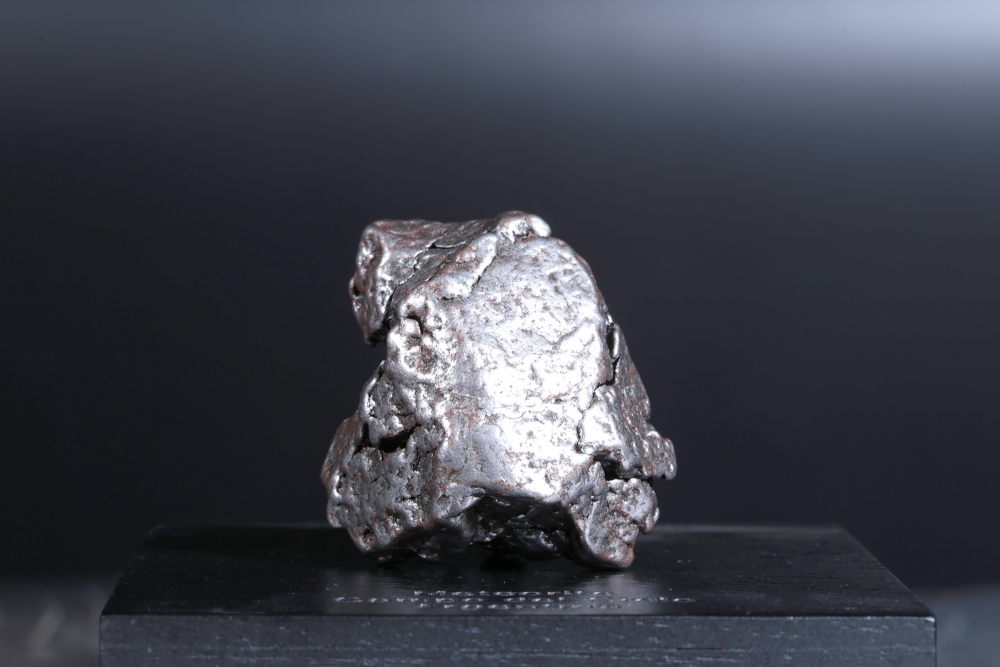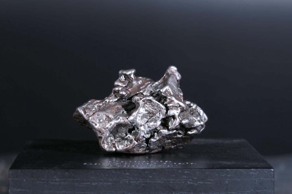 Образец метеорита Campo del Cielo, обнаруженного на севере Аргентины еще в XVI веке, являющего одним из самых крупных когда-либо обнаруженных метеоритов. Представляет собой фрагмент неправильной формы со сложным рельефом.
