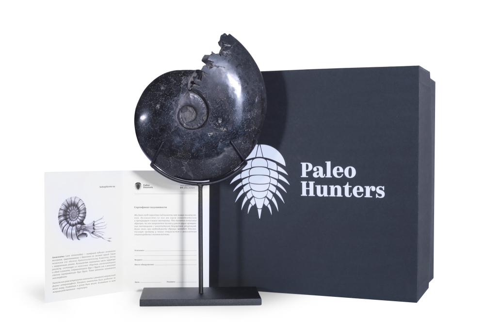 В стоимость включена стильная черная коробка с фирменным логотипом компании Paleo Hunters. Специальный наполнитель убережет вашу покупку от повреждений. К коробке прилагается конверт с сургучной печатью нашего логотипа, внутрь которого помещен сертификат, подтверждающий подлинность образца.